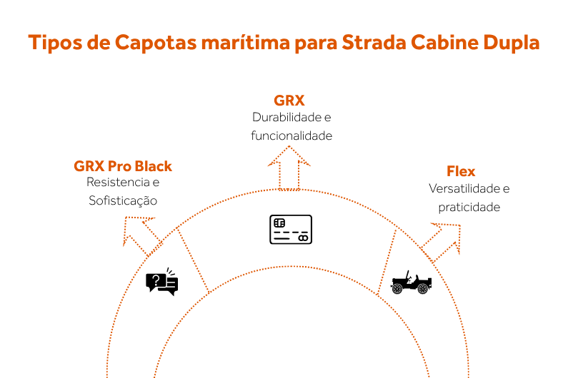A capota marítima para Strada Cabine Dupla é uma cobertura flexível e resistente que fica presa sobre a caçamba, usando estrutura em alumínio ou aço.