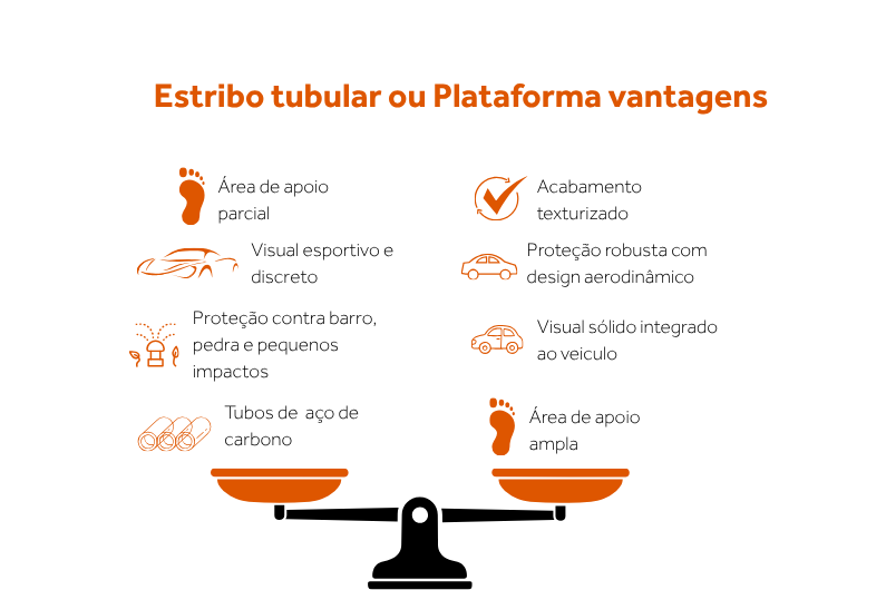 Qual a melhor escolha para meu veículo: estribo tubular ou plataforma?