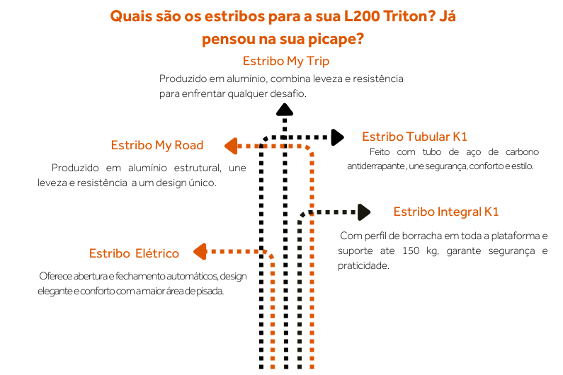 Se você busca os melhores estribos para L200 Triton cuja as peças são pesadas para a instalação rápida e acabamento alinhado , o estribo entá entre eles.